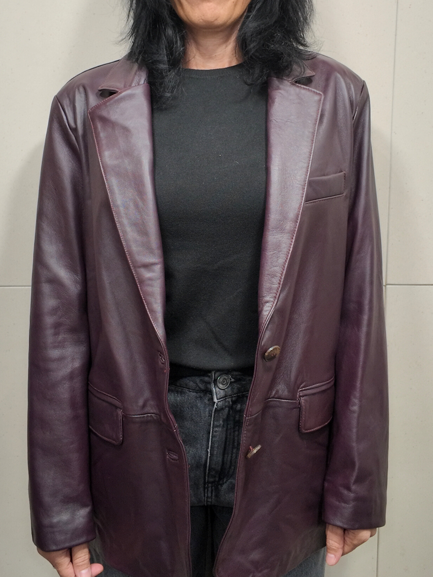 Giacca monopetto, 100% PELLE, modello over con tasche